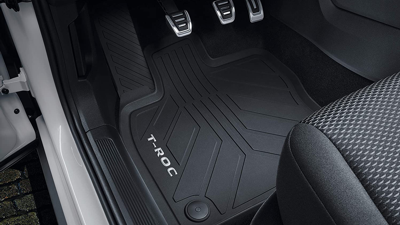 Original Volkswagen T-Roc A1 all weather floor mats made of rubber for the front and rear.