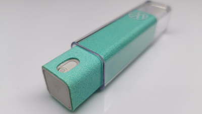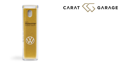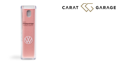 Der Displayreiniger verfügt über einen innenliegenden Zerstäuber mit Reinigungsflüssigkeit und eine Mikrofaserhülle.