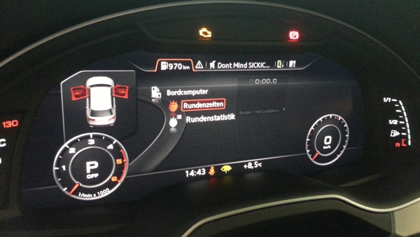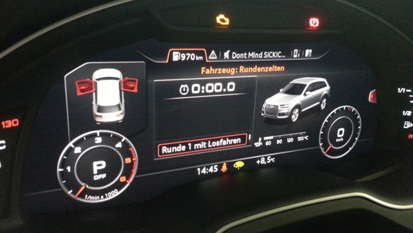 Mit dem Laptimer (Rundenzähler) können sie im virtual Cockpit des Audi Q7 4M Rundenzeiten speichern und Statistiken analysieren.