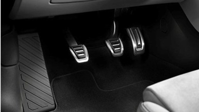 Original aluminium Pedalkappen Komplettset mit Fußstütze passend für den Audi Q3 8U mit manuellem Getriebe.